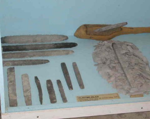 en mindre flintøkse, hvormed flintsmeden har hugget 80.000